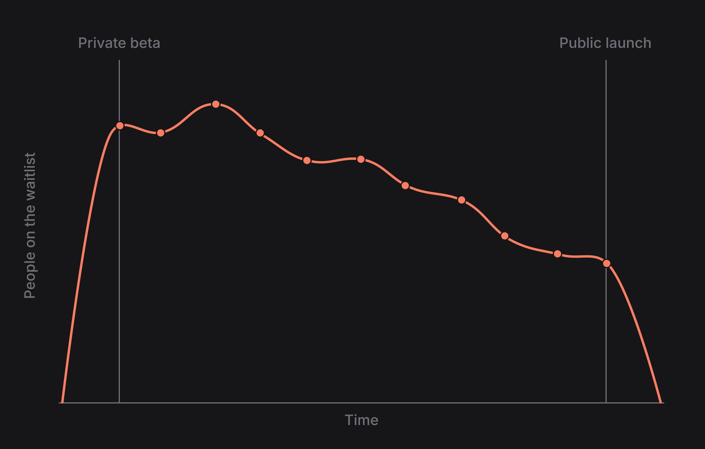 Waitlist에 많은 사람이 등록되면 반복 작업의 각 단계에서 적절한 사용자를 초대해야 합니다. 지금까지 구축한 제한된 기능에 만족할 가능성이 높은 사용자를 초대해야 합니다. 그렇지 않으면 곧바로 이탈할 것이고 아무것도 배울 수 없게 됩니다.