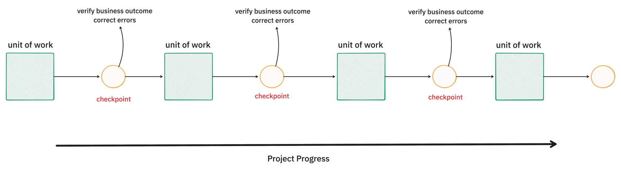 μμ λ¨μκ° μλ£λμμ λμ μνλ κ²°κ³Όλ μΈκ°μ΄ μ΄ν΄ν μ μμ΄μΌ(human-legible) ν©λλ€. μ λ κ·Έκ²μ΄ μ΄ν΄ κ°λ₯ν λΉμ¦λμ€ κ°μΉλ₯Ό μ 곡ν΄μΌ νλ€κ³ μ£Όμ₯ν©λλ€. κΆκ·Ήμ μΌλ‘ μννΈμ¨μ΄μ μ¬μ©μλ μΈκ°(λλ μΈκ°μ κ°λ μ λͺ¨λΈλ§ν μμ€ν )μ΄ λ κ²μ΄κΈ° λλ¬Έμ λλ€. λ°λΌμ νλ‘μ νΈλ₯Ό λΆν΄νλ μ°μν λ°©λ²μ κ° μ²΄ν¬ν¬μΈνΈμμ μ΄ν΄ κ°λ₯ν λΉμ¦λμ€ κ°μΉλ₯Ό μ 곡νλ μμ μμ λ¨μλ‘ λͺ¨λΈλ§νλ κ²μ λλ€. μ΄λ LLMμ 컨ν μ€νΈ μ°½μ μ‘΄μ€νκ³ μ€λ₯ μ νλ₯Ό κ΄λ¦¬νλ λ° λμμ΄ λ κ²μ λλ€.