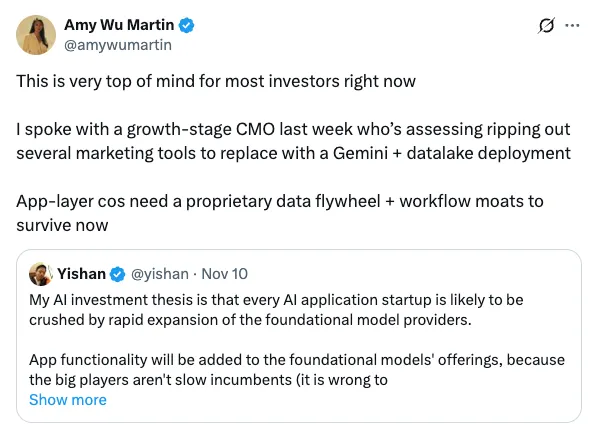 ์์์์ ์ฌ๋ ค ๊น์ ํ์ ํธ์ ๋ด์ฉ์ ์์ฝํ๋ฉด ๋๋ต ์ด๋ ์ต๋๋ค. "๊ณผ๊ฑฐ ๊ธฐ์ ์ฌ์ดํด์์๋ ์คํํธ์ ์ด ๊ฐ์น๋ฅผ ์ฐฝ์ถํ๊ณ ํ๋ณดํ ์๊ฐ์ด ์ถฉ๋ถํ์ต๋๋ค. ํ์ง๋ง AI ๋ถ์ผ์์๋ ๋ชจ๋ธ ๋ ์ด์ด๊ฐ 9~12๊ฐ์๋ง๋ค ๋ฐ๋๊ธฐ ๋๋ฌธ์, ์คํํธ์ ์ด ์ํฐํ๋ผ์ด์ฆ ๊ด๊ณ๋ฅผ ๊ตฌ์ถํ๊ณ ์ง์ ๊ฐ๋ฅํ ๋ธ๋๋๋ฅผ ๋ง๋ค์ด ๋ํ๋์ง ์๊ธฐ์๋ ์๊ฐ์ด ํฐ๋ฌด๋์์ด ๋ถ์กฑํฉ๋๋ค."
