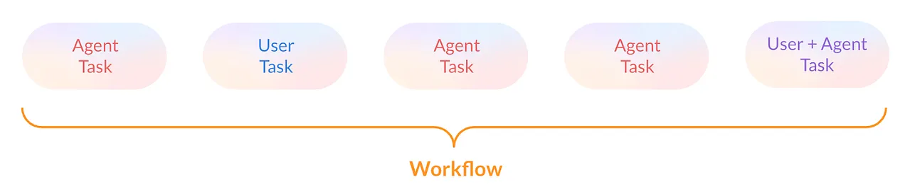 ๋ ํฐ ์ํฌํ๋ก์ฐ๋ ์ข ์ข ๋ง์ ๊ฐ๋ณ ์์ ์ผ๋ก ๊ตฌ์ฑ๋๋ฉฐ, ๊ทธ์ค ์ผ๋ถ๋ ์์ด์ ํธ๊ฐ ์ ์ ์ผ๋ก ์ํํ ์ ์๊ณ , ๋ค๋ฅธ ์ผ๋ถ๋ ์ฌ์ฉ์ ์ํธ์์ฉ์ด ํ์ํ๋ฉฐ, ๋ ๋ค๋ฅธ ์ผ๋ถ๋ ์ฌ์ฉ์๊ฐ ์ ์ ์ผ๋ก ์ฒ๋ฆฌํ ์๋ ์์ต๋๋ค.