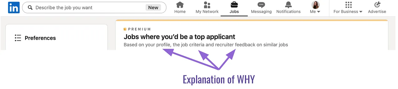 μ±μ© μ§μκ³Ό κ°μ΄ μ€μν κ²°μ μ μμ΄μλ ν¬λͺ μ±μ΄ ν΅μ¬μ λλ€. LinkedInμ κ°μΈνλ μΆμ²μ μ΄μ λ₯Ό λͺ μμ μΌλ‘ λ°νμΌλ‘μ¨ μ΄ μ μ νλ₯νκ² ν΄λ λλ€.
