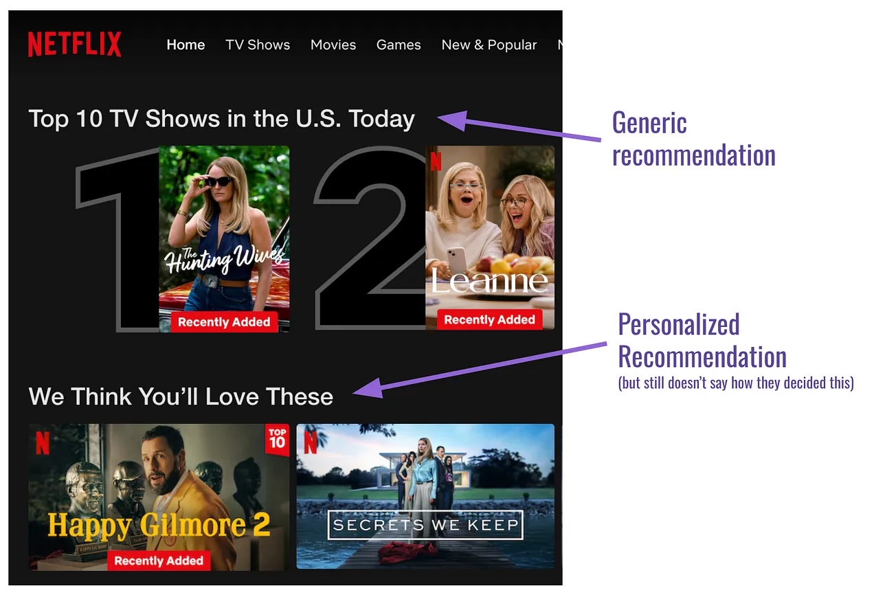 λ€μμ 무μμ λ³Όμ§μ κ°μ λ μ€μνκ³ λλμ μΆμ²μ κ²½μ°, λͺ¨λ μ μμ λν΄ "μ΄μ "λ₯Ό μ€λͺ νλ κ²μ λΆλ΄μ€λ¬μΈ κ²μ λλ€. Netflixλ κ°μΈνλ μ½ν μΈ μ μΌλ° μ½ν μΈ λ₯Ό ꡬλΆνκΈ° μν΄ λͺ μμ μΈ νλ μ΄λ°μ μ¬μ©νμ¬ μ΄ λ¬Έμ λ₯Ό μ리νκ² ν΄κ²°ν©λλ€.